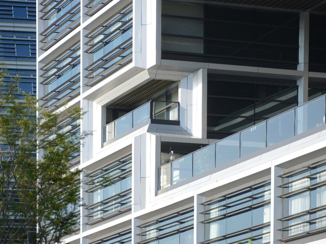 立面采用集成式模块化幕墙,立面在幕墙系统内设置了遮阳设施,在不影响景观视野的同时被动式响应环境负荷。一方面模块化设计使施工难度降低,另一方面不同模块与不同环境特征相互响应使建筑整体更为智能宜人。