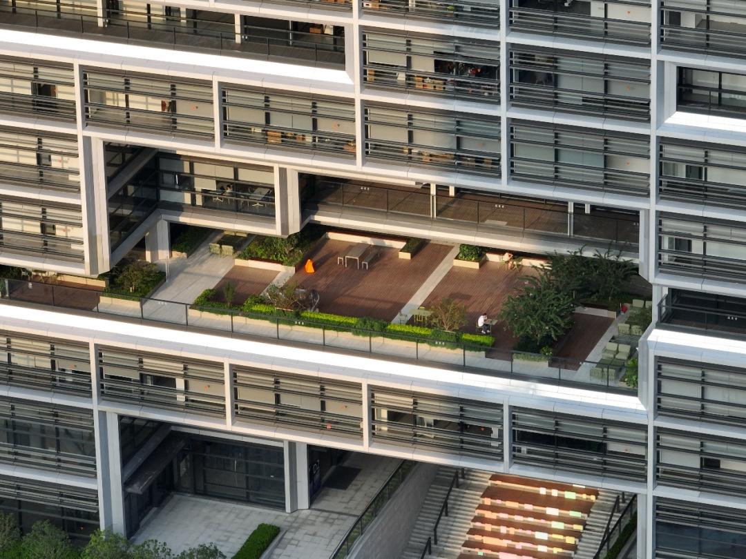通过下沉广场、底层架空、层层露台、连廊等打造了多层次、立体化的公共口空间和富有活力的体验感,最大化了对江景、浦东CBD等相邻公共空间的景观视野。