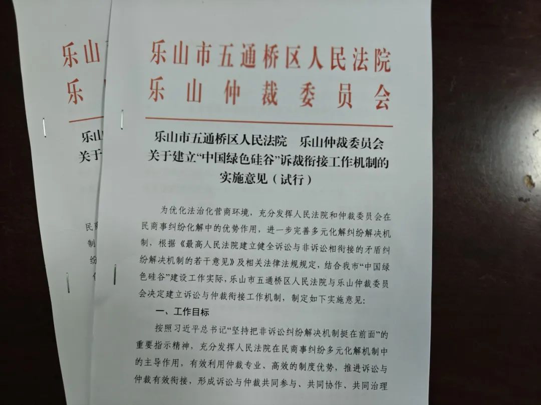 乐山市五通桥区人民法院向上滑动看下一个原标题:《诉裁衔接“聚合力”,以法护商“促发展”——五通桥区法院与乐山仲裁委员会共同签署《诉裁衔接工作机制实施意见》》