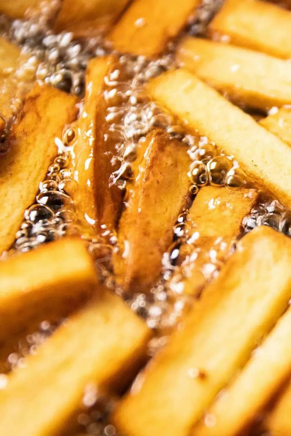 薯条在炸制中。