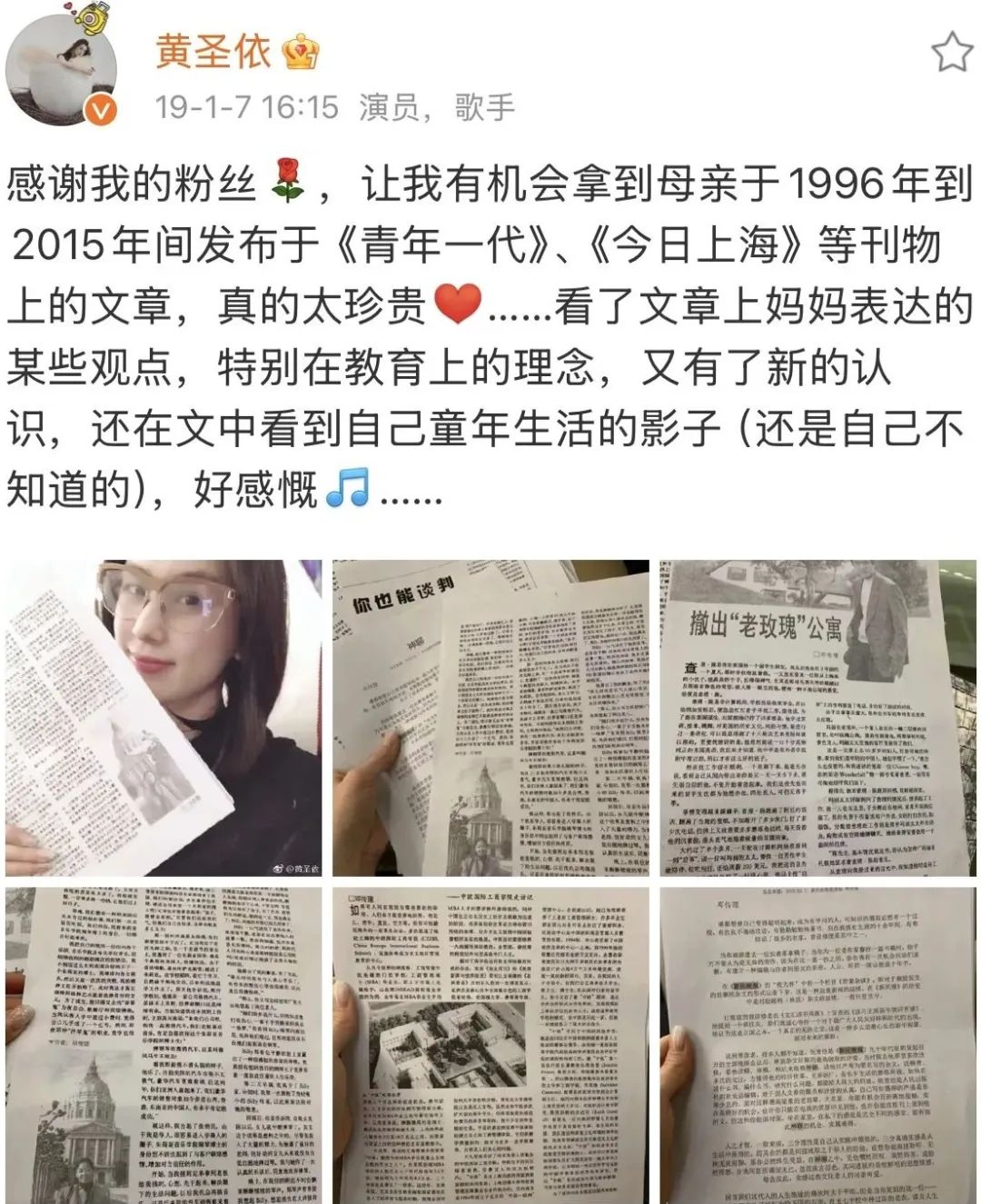 黄圣依微博作为家中独女、名门之后,童年的黄圣依在优渥的环境中长大,是全家捧在手心的明珠。母亲注重培养她的艺术修养,学画画、游泳、跳舞,给她“远比一般孩子好的钢琴条件”。
