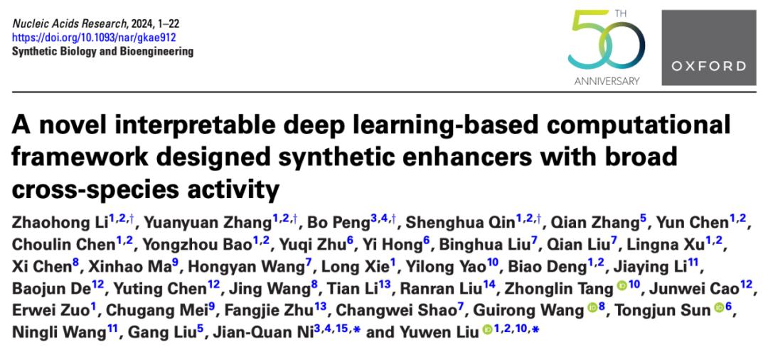 为进一步探索增强子设计的解决方案,中国农业科学院深圳基因组研究所刘毓文团队和清华大学倪建泉团队合作,于2024年10月18日在 Nucleic Acids Research 期刊发表了题为:A novel interpretable deep learning-based computational framework designed synthetic enhancers with broad cross-species activity 的研究论文。