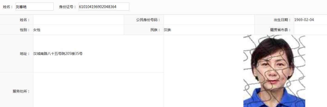 被执行人:刘春艳,女,1969 年 2 月 4 日出生,汉族,住西安市莲湖区汉城南路八十五号院西钢 205 楼 35 号。