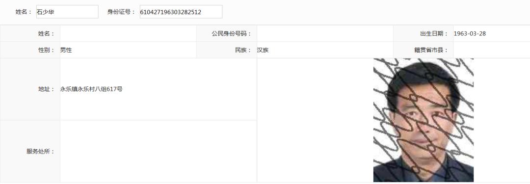 被执行人:石少华,男,1963 年 3 月 28 日出生,汉族,住陕西省彬县永乐镇永乐村八组 617 号。