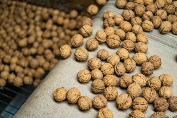 这是一条直通产地的最短链路——在鲁史镇金鸡村,村民何家彦牵头成立金三核桃种植合作社,建起核桃水洗加工站,青皮核桃经脱皮、水洗、初烘烤后拉到山水工厂,按照良品标准再次拣选、分级,包装好后发货。