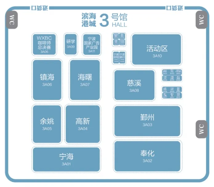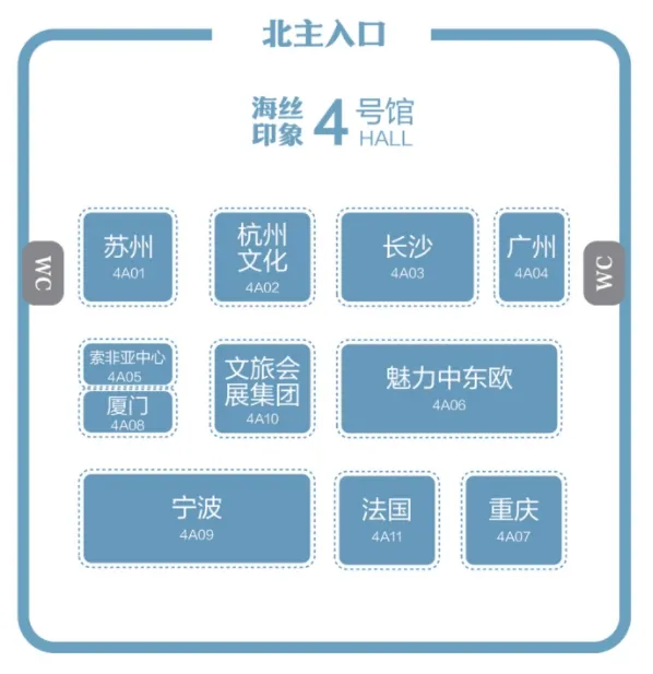 3号馆、4号馆及5号馆东侧为海丝之路文化和旅游博览会展馆,总面积约 13270平方米,其中3号馆设置宁波各区(县、市)展区;4号馆设置国际展区(法国、中东欧等)、城市展区(重庆、广州、杭州、苏州、长沙、厦门等)、宁波馆、文旅会展集团馆等。5号馆东侧设置数智科技展区、文化创意展区、文化金融展区、网红品牌展区。