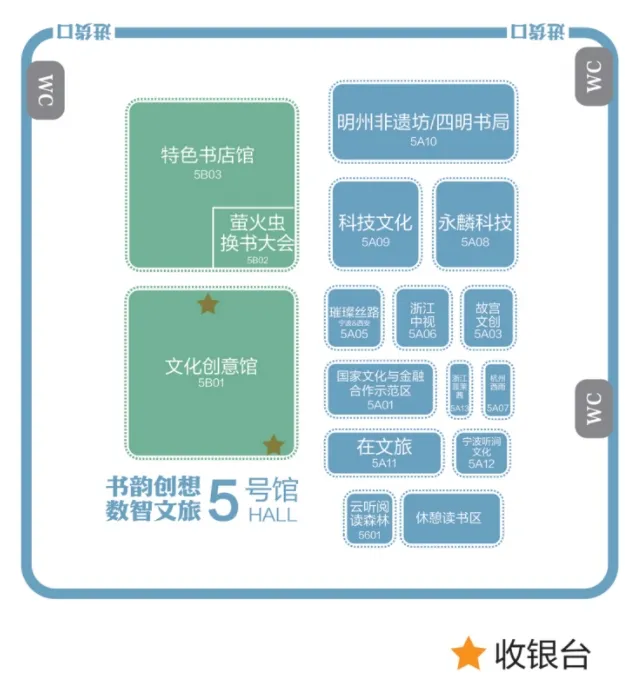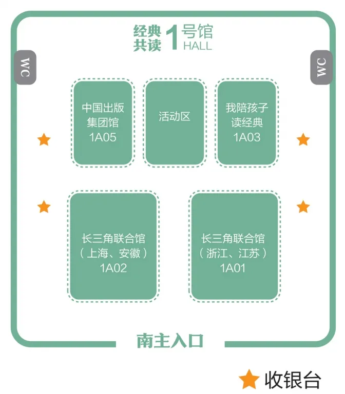 1号馆、6号馆及5号馆西侧为浙江书展展馆,总面积约 13080平方米,其中1号馆设置中国出版集团馆、长三角联合馆、我陪孩子读经典悦读馆;6号馆设置名社好书馆、少儿阅读馆、书香生活馆、阅读场景馆;5号馆(西侧)设置特色书店馆、文化创意馆。