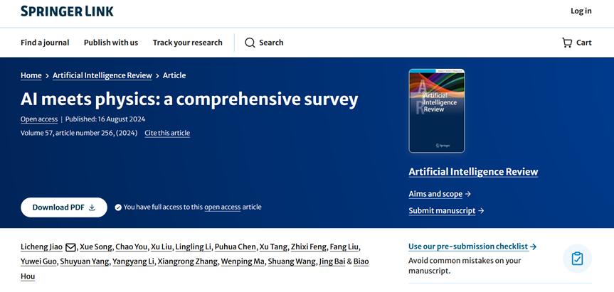 导语2024年诺贝尔物理学奖一经公布即引发了广泛讨论——。机器学习的发展与物理有何种关系,又会对物理学产生怎样的影响?近期发表于Artificial Intelligence Review 的综述论文 AI meets physics: a comprehensive survey深入探讨了物理学与人工智能发展的相互促进。