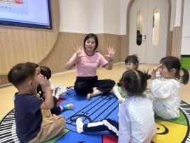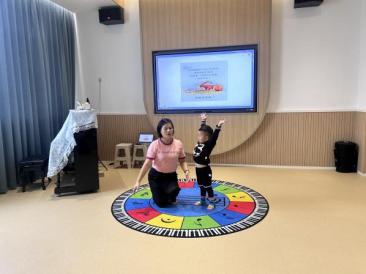 课上,老师向孩子和家长分享了绘本《猜猜我有多爱你》,一场以爱为主题的亲子阅读盛宴悄然拉开序幕。故事贯穿整个课堂,色彩丰富的故事画面,有趣的律动游戏,孩子们依偎在父母身旁,听得津津有味,时而点头,时而欢笑。