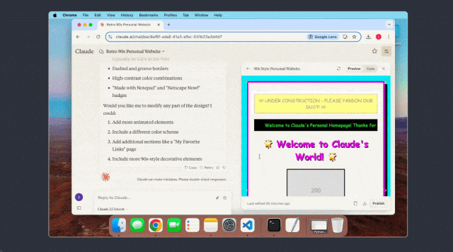 对于 Claude 来说,它观察到的屏幕「翻页」方式 —— 是通过拍摄屏幕截图并将它们拼接起来的方式,而不是观察更细粒度的视频流。这种方式意味着 Claude 可能会错过那些短暂的操作或通知。