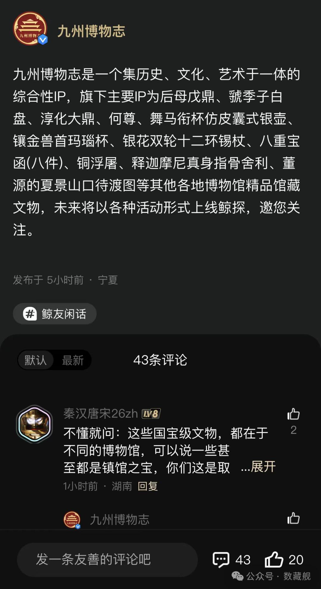 截止发稿前,「九州博物志」已经删除了上述相关动态。