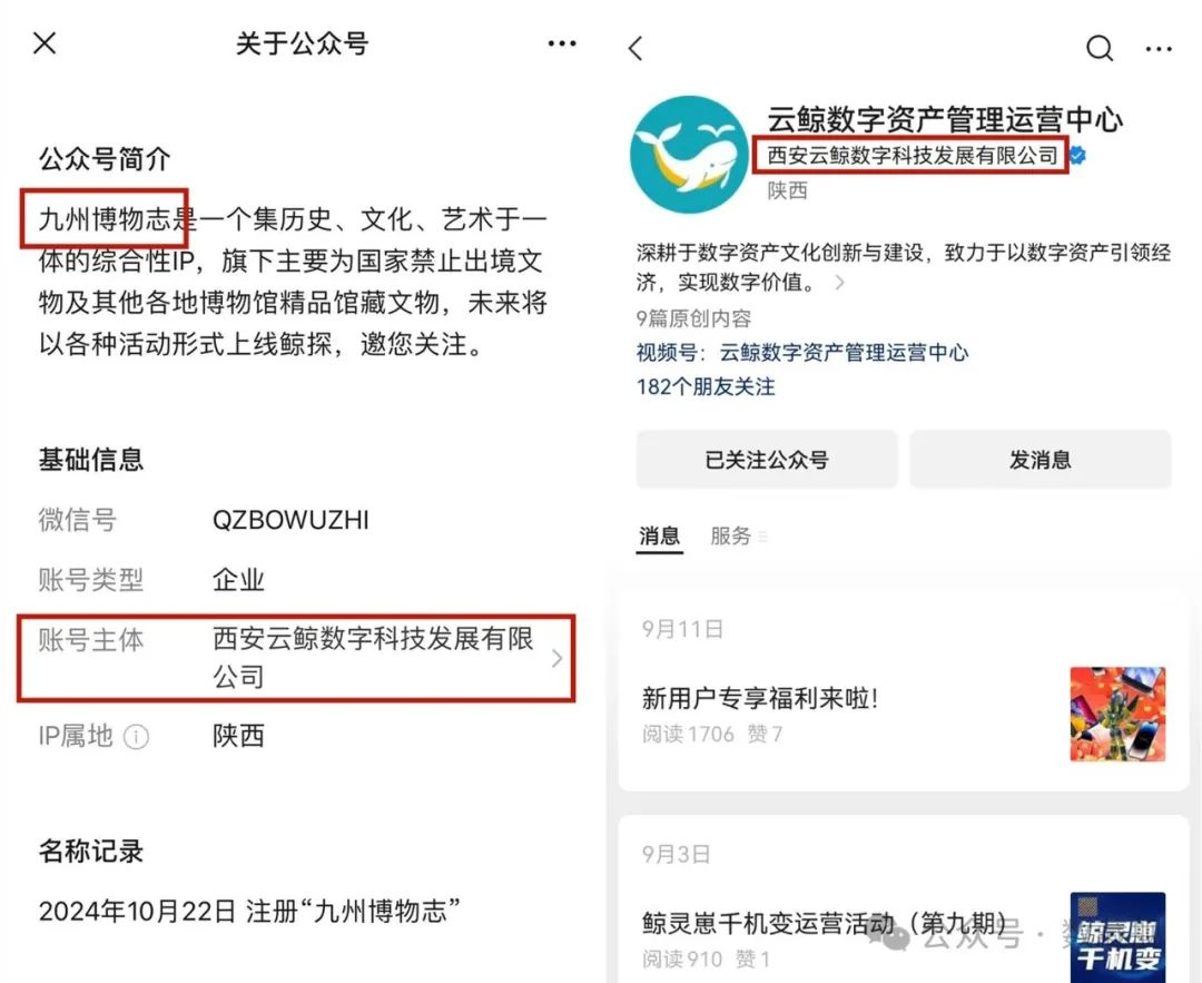 还有藏家指出,「九州博物志」的运营方为西安云鲸数字科技发展有限公司。该公司曾在「鲸探」发行过「鲸灵崽」、「龙生九子」等多个知名IP。同时,「云鲸」也运营着独立的数藏平台「云鲸数字资产发行平台」,并与甘肃数字资产运营与交易平台飞天数驿达成了流转合作,被用户视为比较「会玩」的发行方。
