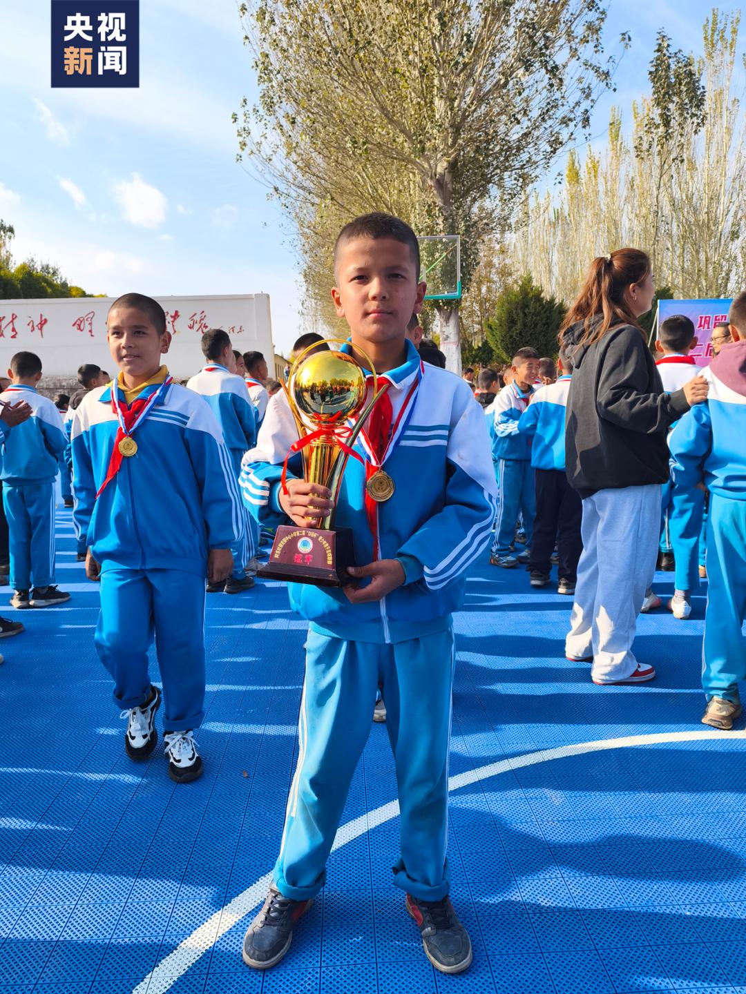近日,新疆一乡村小学“足球小将”