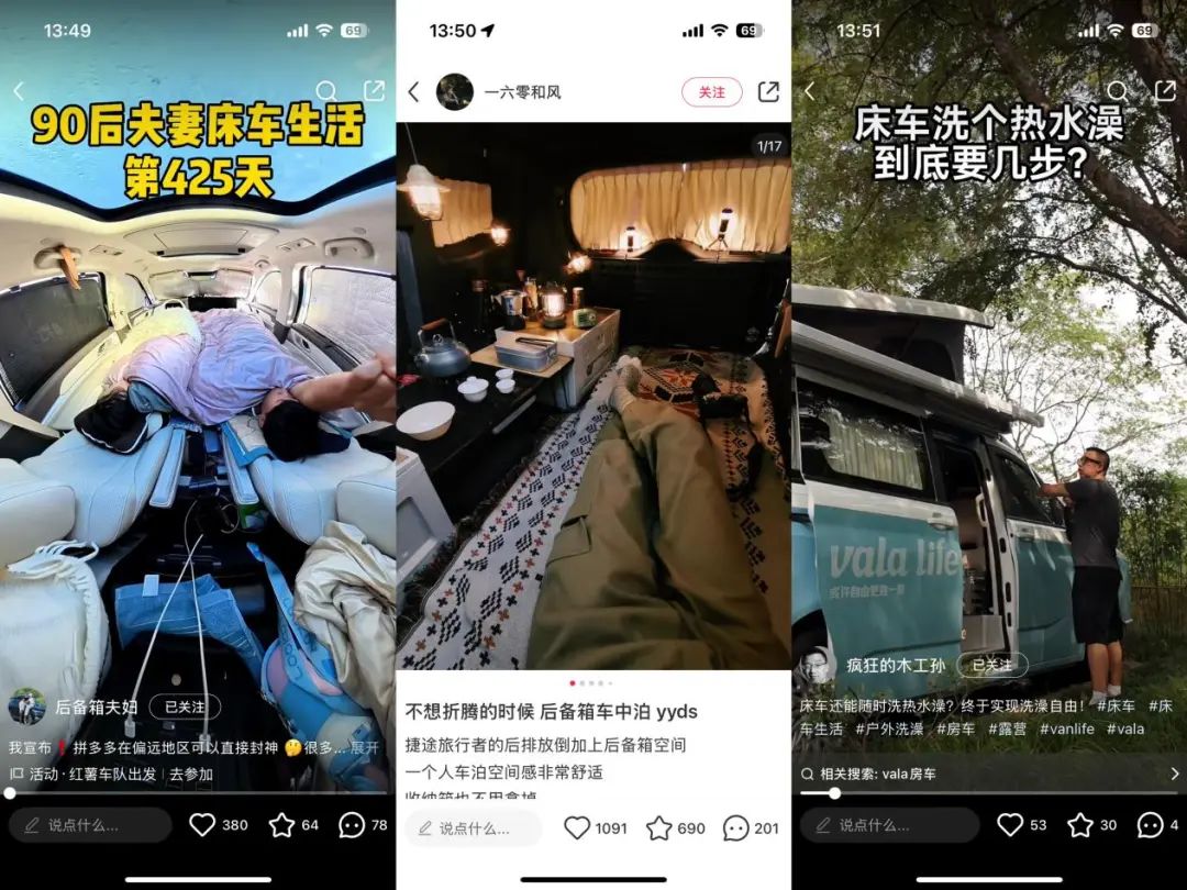在小红书,关于床车主题的笔记数量已经破10万+。床车之所以爆火,更多在于其击中年轻人追求诗和远方与老实上班之间微妙的中间地带。