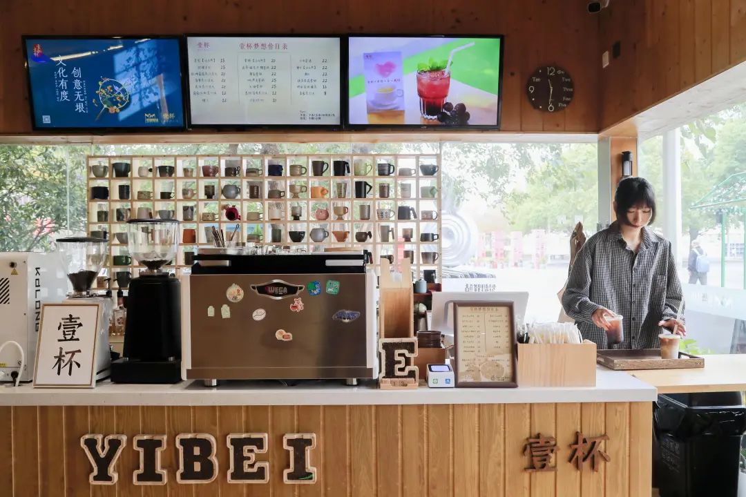 黄浦滨江党群服务站半淞园梦想驿站(下文简称“半淞园梦想驿站”)位于黄浦区苗江路近望达路,建筑面积 200 平米,驿站以服务人民群众为立足点,通过开放式空间搭配简约实木装修,构建形成集休闲娱乐、便民服务、互动交流多功能于一体的复合型共享空间,开展辐射黄浦滨江沿线的为民服务活动。同时这里也是滨江红色文化主题阵地复兴梦广场的室内展陈空间,是追寻淞园红色记忆的文化窗口、功能多元的党群服务、游客服务公共空间和传递城市温度的滨江驿站。