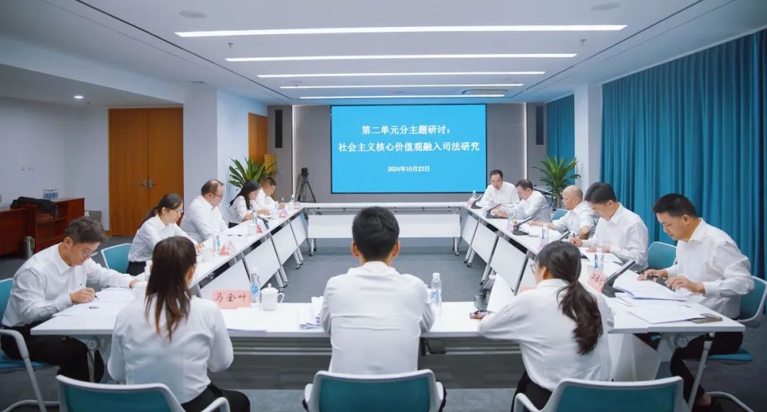 推进会还设置了应用法学专题研讨会环节,共分“涉案财物处置问题研究”“社会主义核心价值观融入司法研究”“执破融合改革中相关问题研究”“民事纠纷若干疑难问题研究”“资产支持证券制度问题研究、区块链证据相关问题研究”“新《公司法》修订重点内容研究”六个主题单元。来自园区法院的法官代表和法学专家们齐聚一堂,以法官介绍案情和实践困境为起点,围绕争议焦点和法律适用问题畅所欲言。