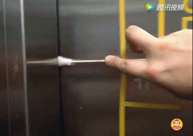 工作人员模拟一根树枝放在电梯门中间时,电梯门未感应到,直接闭合了。