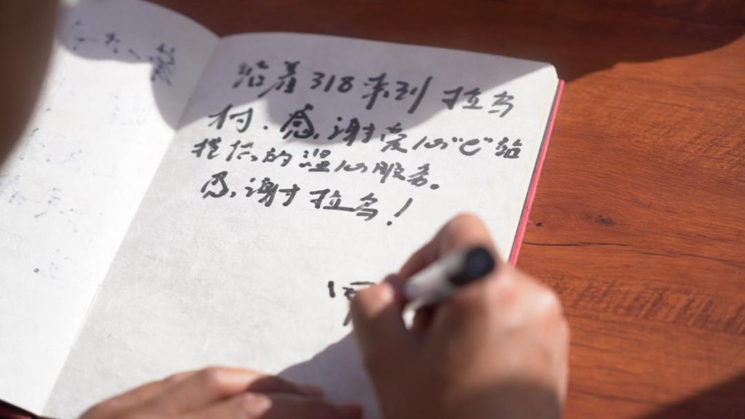 “贡嘎姆桑” “托切那”这一声声美妙的藏语,响彻在318国道上。一声声的“谢谢”击破寒风。一张张彩色的留言条,丰富了西藏的色彩。