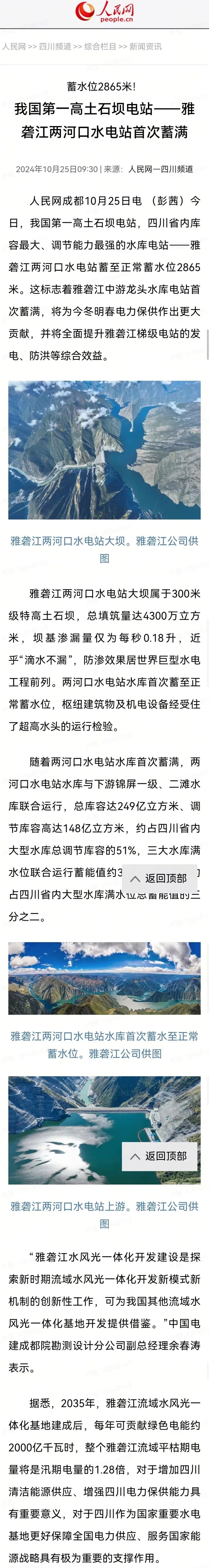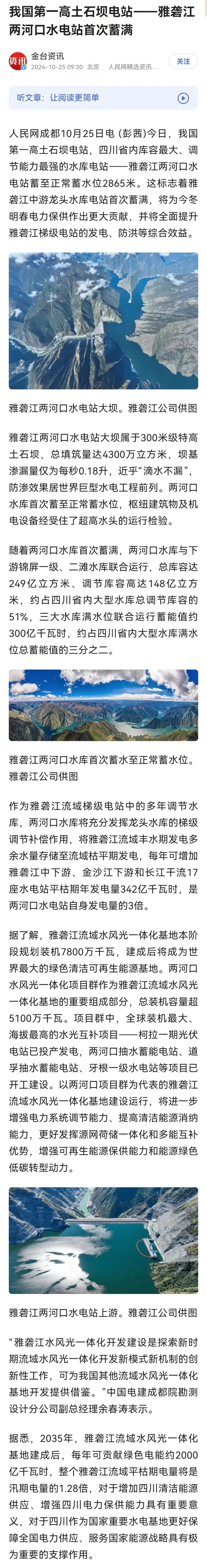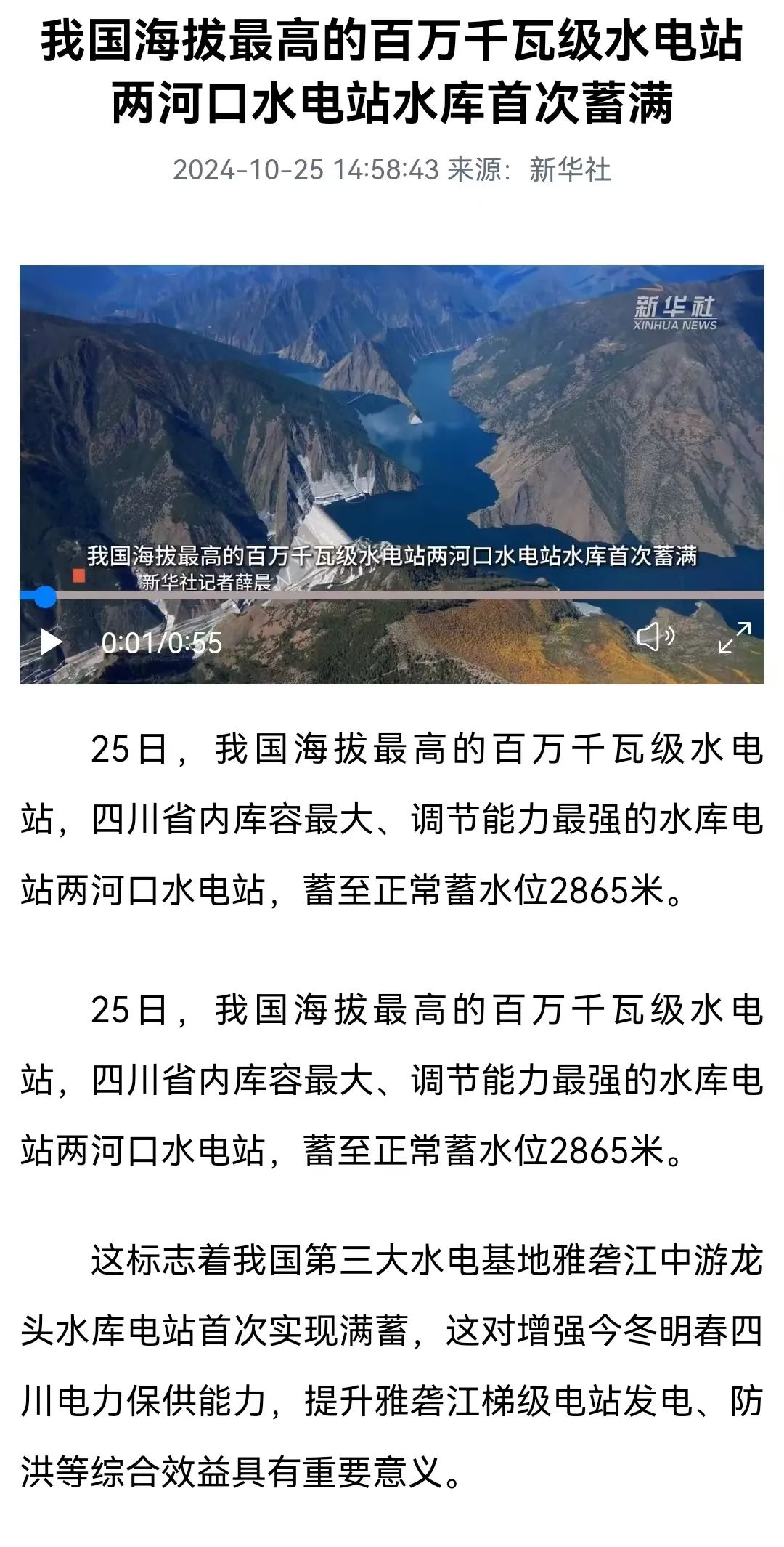 原标题:《我国第一高土石坝!国投雅砻江公司两河口水电站首次蓄满》