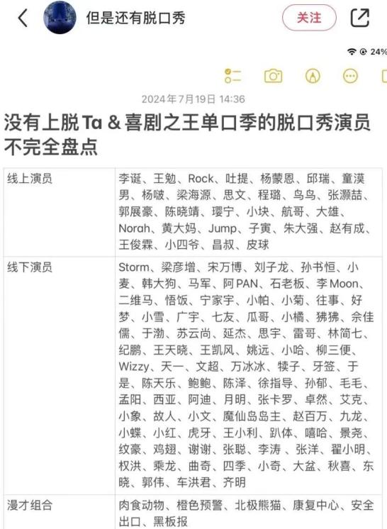 脱口秀行业观察者“但是还有脱口秀”对今年没有上两档节目的脱口秀演员进行了不完全盘点,可见还有相当大的挖掘空间。
