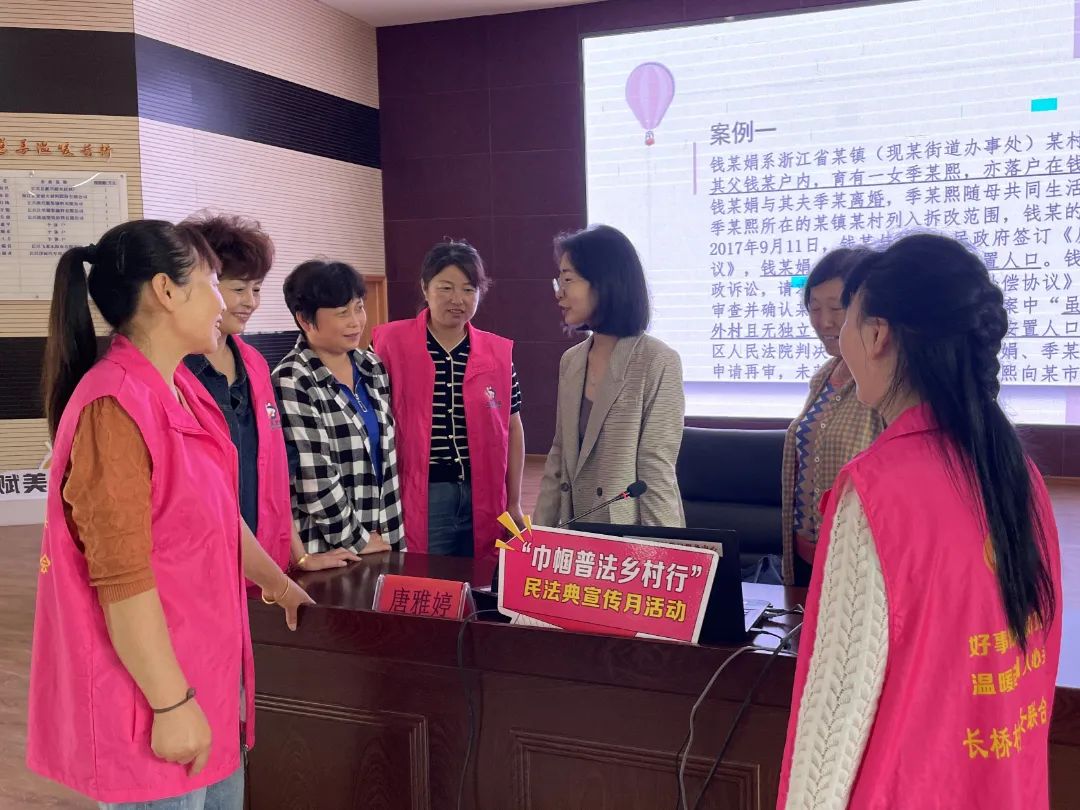 “爱伊行”巾帼普法乡村行公益律师团成员唐雅婷律师先后赴李家巷镇、林城镇、画溪街道、洪桥镇等,以《婚姻遭遇危机,原配如何保家卫婚维护自身权益?》和《维护“她”权益,民法典继承篇 》等为主题,为广大的基层妇联干部和妇女群众送上了普法知识大餐。唐律师从工作中接触的实际案例出发,生动地向大家普及了相关法律知识,并开展了课后咨询解答。参与讲座的妇女群众纷纷表示,这样的普法课送得非常实用方便,在生活中就能活学活用。以案释法