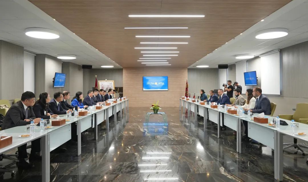 宋海良与摩洛哥工业与贸易大臣里亚德·梅祖尔会谈摩洛哥是最早与新中国建交的非洲国家之一,也是首个与中国签署共建“一带一路”合作规划的北非国家。2016年两国建立战略伙伴关系,双边关系稳定发展。如今,摩洛哥已成为中国企业海外投资的新热点,特别是在可再生能源和新能源汽车电池领域。“摩洛哥和其他非洲国家都很重视借助中国的技术优势,实现自身的经济社会发展。”摩洛哥驻华大使安萨里今年8月在一次采访中表示。