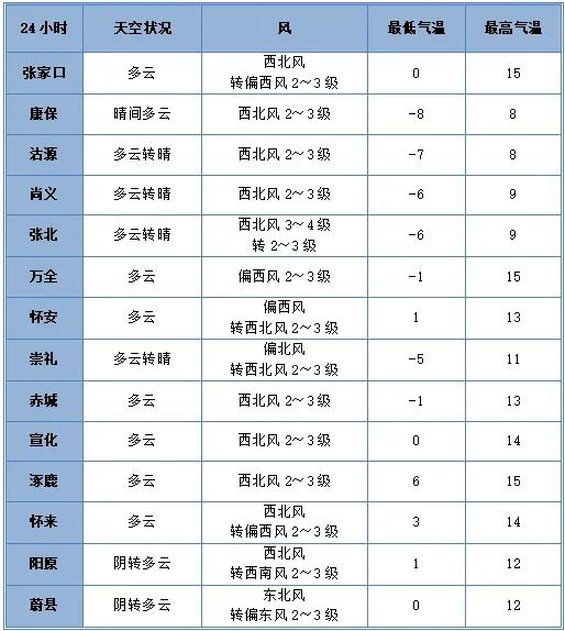 张家口今天气温将明显下降,