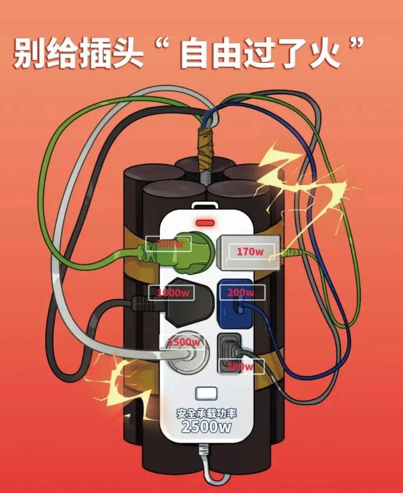 合理使用大功率电器同一时间段内不要在同一条电路、同一个插座接入多台大功率电器,避免超负荷用电的发生。