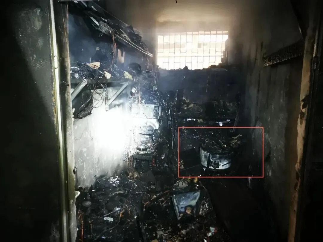 案列32024年10月10日,蕉岭县蕉城镇一杂物房发生火灾。接警后,消防救援站立即赶到现场处置,经过扑救,火势完全被扑灭。户主介绍,事发前正在测试维修后电饭煲的工作性能,但当事人离开了杂物房,无人看管,电饭煲烧干水后继续工作导致引燃了杂物房物品。