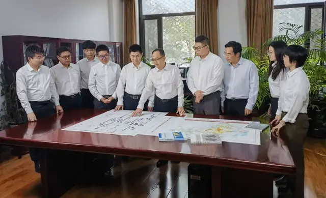 ▲黄福喜(右五)和团队同事们讨论方案