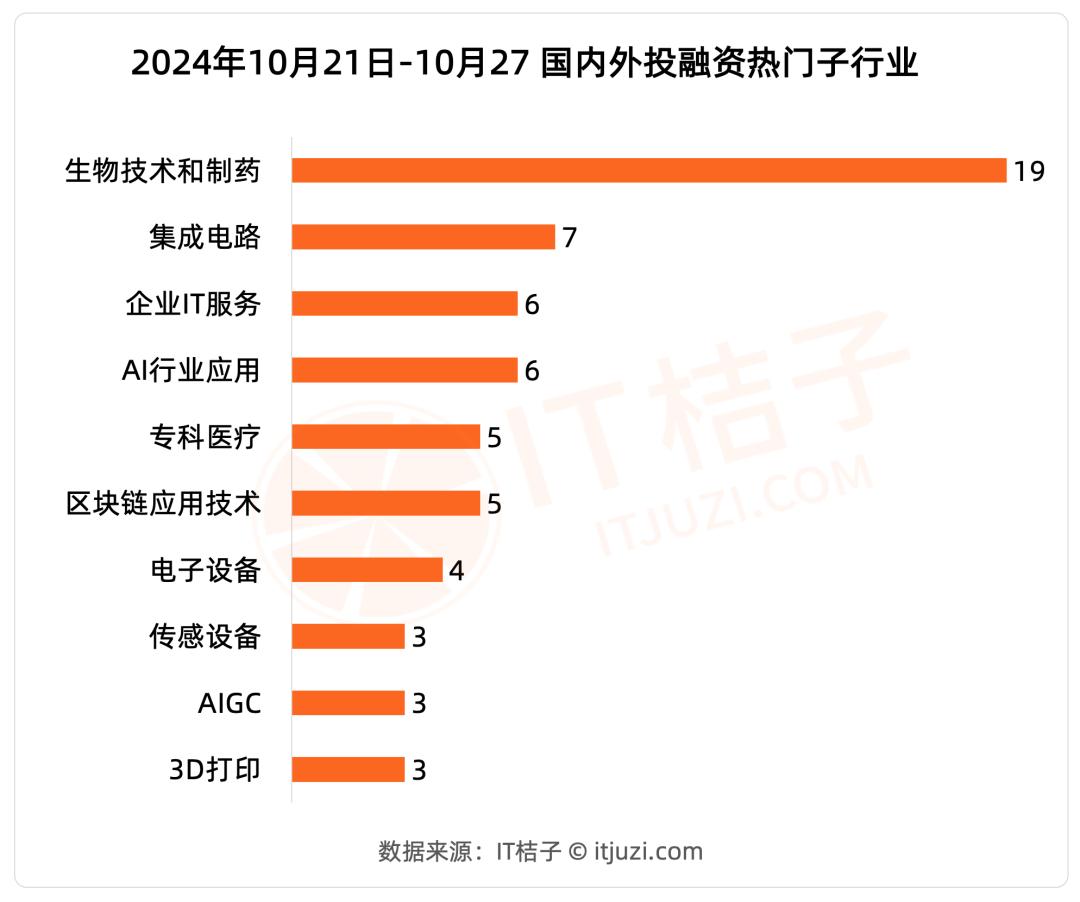 近 2 周最受投资人追捧的赛道分别是生物技术和制药、集成电路、AI行业应用、企业IT服务、区块链应用技术等。