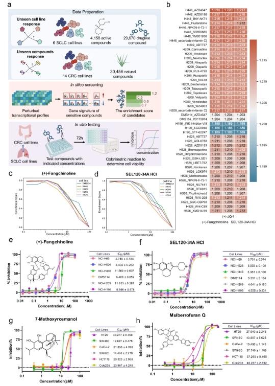 PRnet确定的针对小细胞肺癌和结直肠癌的候选者。PRnet发现天然化合物对抗结直肠癌