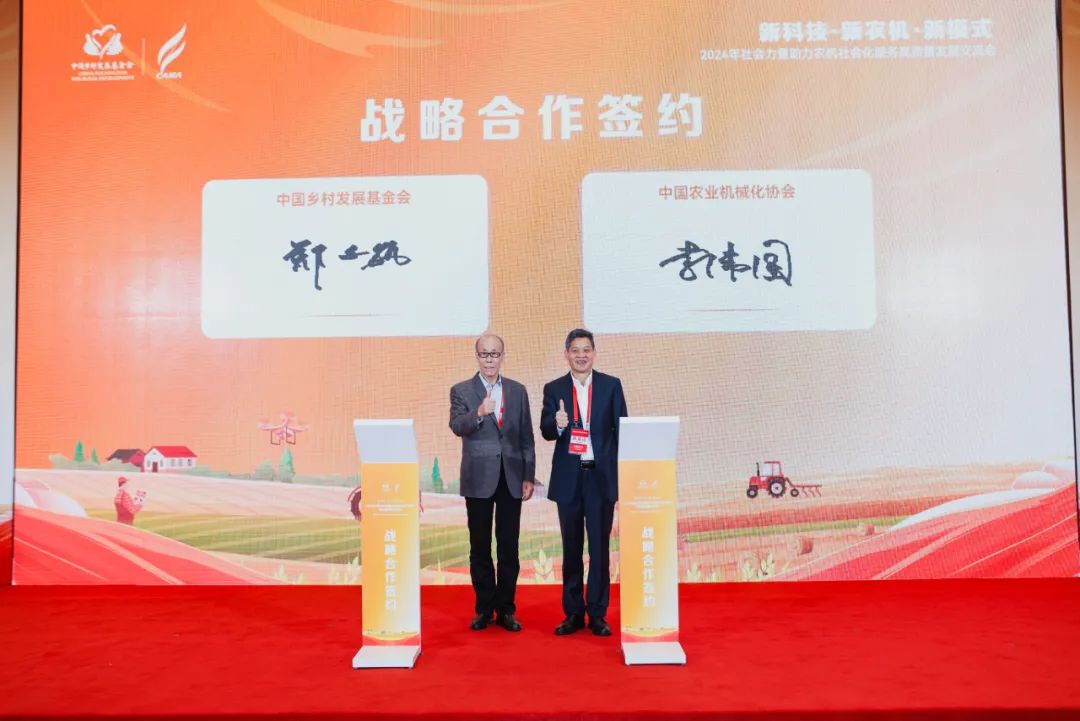 圆桌会议讨论现场活动上,中国农业机械化协会与中国乡村发展基金会共同签订了战略合作协议。未来,双方将整合各自业务领域的资源优势,创新机制,深化合作,搭建农机社会化服务合作交流平台,共同助力和推动社会力量助力农机社会化服务高质量发展。