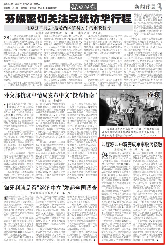 《印度斯坦时报》28日报道称,印度和中国将于当天完成在实控线(LAC)沿线的军事脱离接触。印媒此前称,印中两国计划在10月28日至29日完成在实控线沿线的军事脱离接触,此次脱离接触行动是两国改善外交关系的重大步骤。28日接受《环球时报》采访的专家表示,尽管噪音不断,但中印的共同努力对执行有关协议以及引导双边关系重回正轨至关重要。