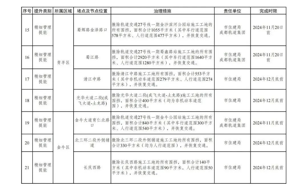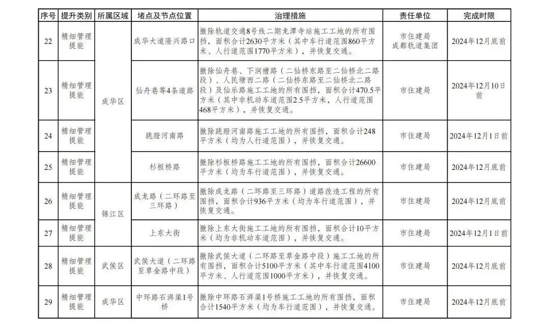 原标题:《成都第一批次63项堵点治理任务清单公布》