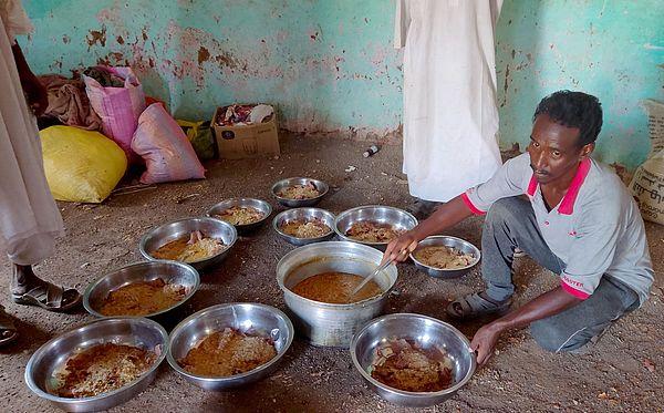 当地时间2024年6月3日,苏丹格达雷夫,一名男子用盆盛食物,迎接来自苏丹中部格齐拉州的流离失所者/图源自视觉中国在流离失所人口中,有约312万人越境进入乍得、南苏丹等邻国避难,使得苏丹冲突的外溢风险不断显现。