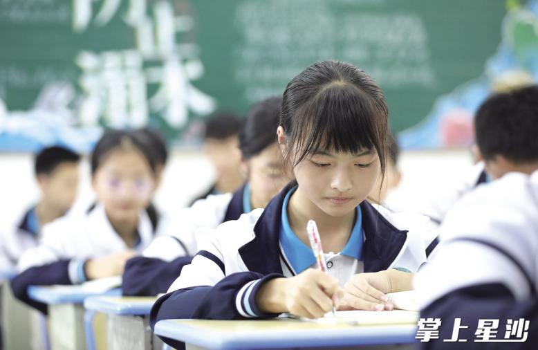 长沙县春华中学的学生在乡镇也能享受到与城里学校无差别的教学环境,图为该校学生正在认真上课。均为李杰 摄而此前,这位在市区一所九年一贯制公办学校就读。今年9月,其跟随在市区工作的妈妈,在长沙县春华镇租房居住,就读了春华中学。
