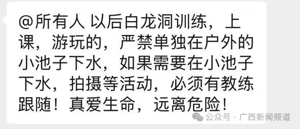 同时,渠黎镇政府工作人员还向记者表示,当地并没有“白龙洞”这个地名,发生溺水事故的区域为一片自然水域,同时也是个水源保护地,并非网传的景点,“该片区域周围已经设置了防护和警示标语,并在主要路口采取封闭措施,每天也组织人员开展巡查,里面是存在一定安全隐患的,我们也很奇怪为什么会有人能进去游泳。”