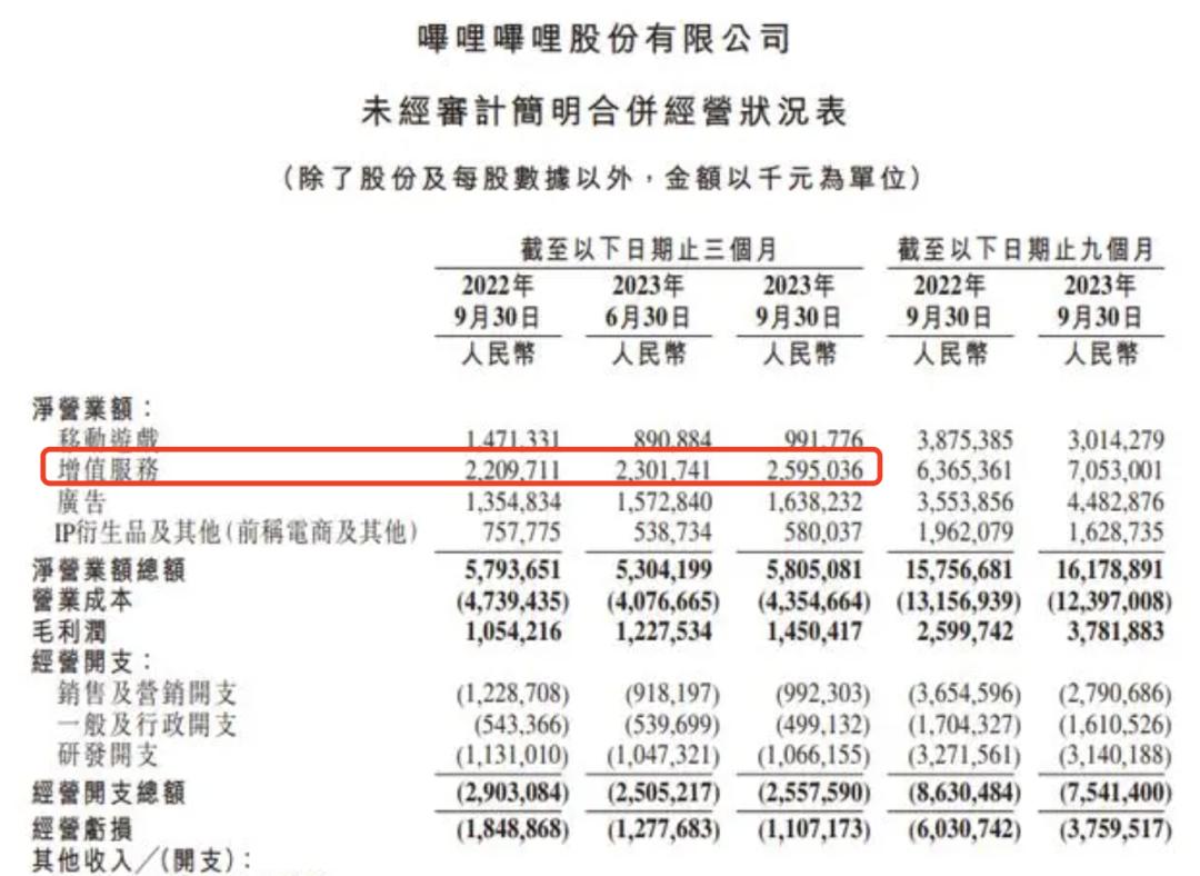 2023年11月,B站发布三季度财报,数据显示,三季度总营收达58.1亿元人民币。直播业务收入快速增长,推动增值服务业务收入达26亿元,同比增长17%。