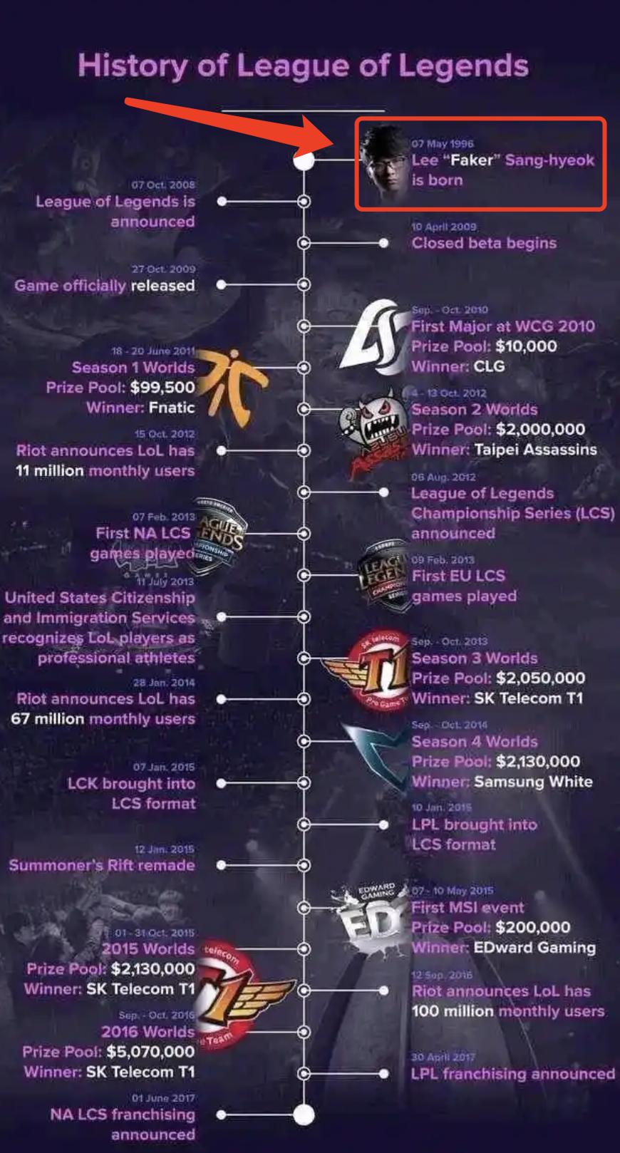 在英雄联盟官方的编年史中,时间线的起点不是2008年游戏的诞生,而是Faker的出生。