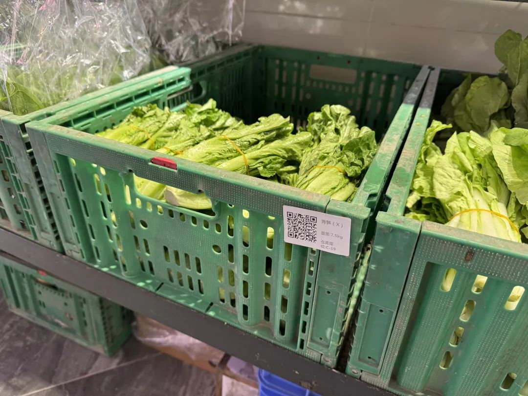 “比如满彭门店销售的高山生菜、高山菠菜,产自小金县海拔3000米的云顶农场,我们把标准化蔬菜筐统一投放到农场里,种植户会按照我们的标准要求,在采摘时就直接分装打包成10斤/筐的标品菜包。此后,无论是配送、上架还是销售,都只需要清点筐数进行电子化结算,减少中间环节,提高运转效率,最短的时间将新鲜送到消费者的餐桌上。”据文利琼介绍,光是定制这批标筐,满彭就投入了200多万元。记者注意到,在满彭菜场的每一个蔬菜筐上,都张贴了一个溯源二维码。“我们自主研发了一套智能仓储管理系统,工人们在给各门店进行配送时,只需通过分拣器(PDA)扫描二维码,蔬菜的品名、重量、筐数等信息就会自动录入系统,并传输到店长手机,实现蔬菜信息的高效搜集和实时提交。”文利琼介绍道。