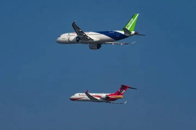 国产飞机C919和ARJ21首次完成双机编队飞行表演