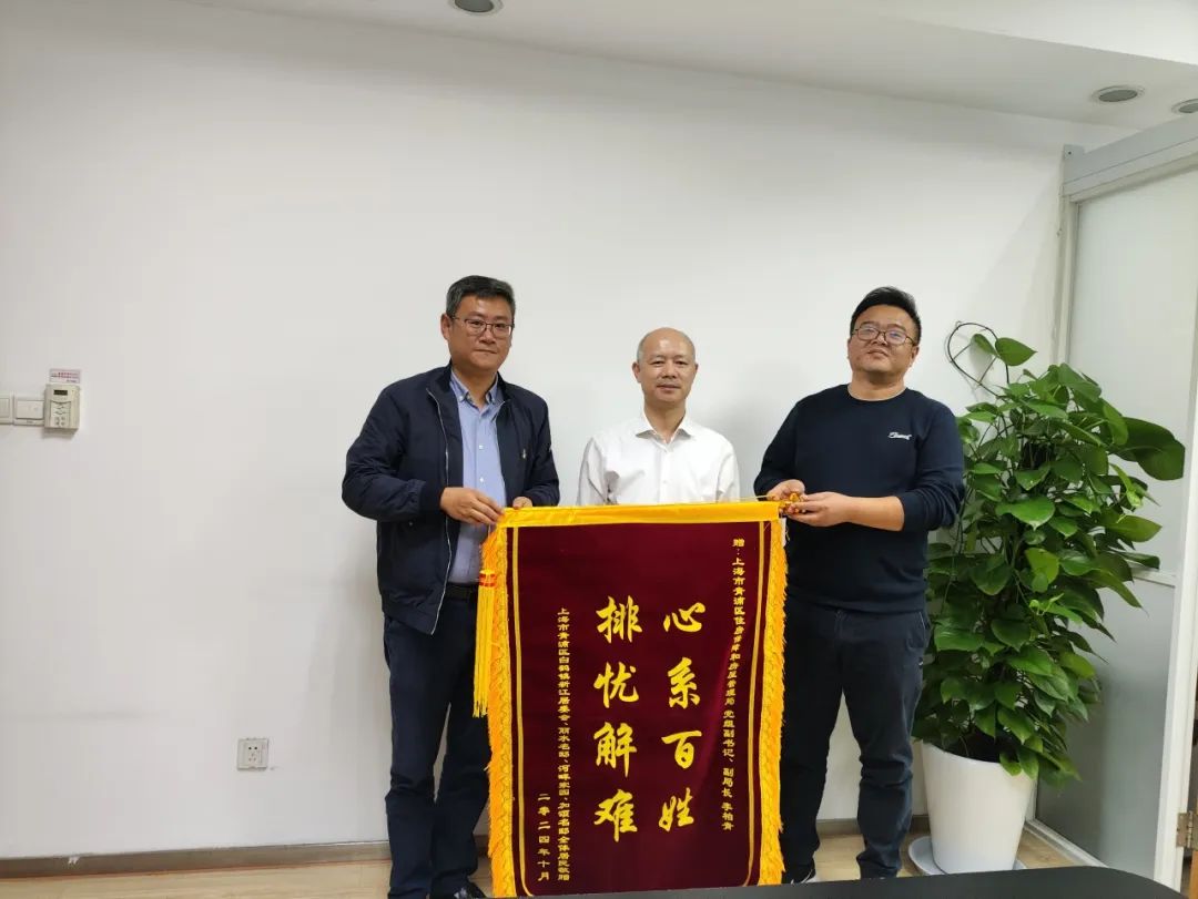 10月30日,白鹤镇城建中心和新江居委会负责人将一面印有“心系百姓,排忧解难”的锦旗和一封由几十名业主联名拟写的感谢信送到了青浦区房管局,就丽水名邸小区的物业选聘事宜向局分管领导和物业科、物业中心致谢,称赞他们用心用情用力为群众办实事、解难题。