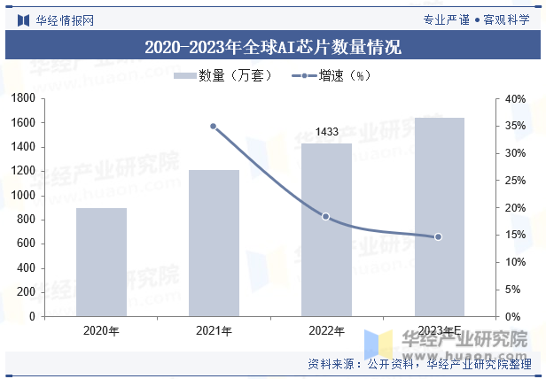 图3 2020-2023年全球AI芯片数量情况(图源:华经产业研究院)