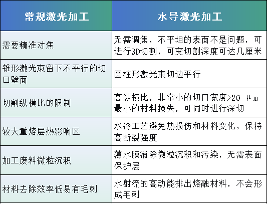 相比于传统激光加工技术而言,水导激光加工具有显著优势。这些优势使得水导激光加工在需要高精度切割的应用中,如微电子、金属及非金属材料和精密机械制造等领域,具有广泛的应用前景。