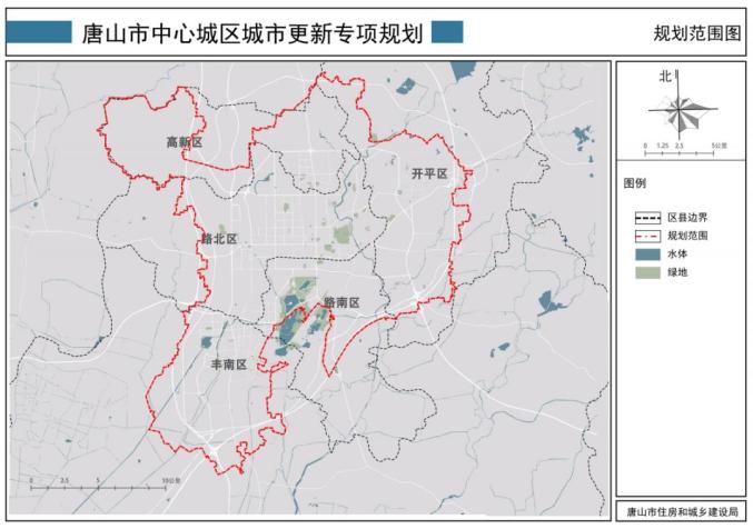 本规划范围为唐山市中心城区(路北区、路南区、高新区、开平区、丰南区)、丰润区及曹妃甸区。