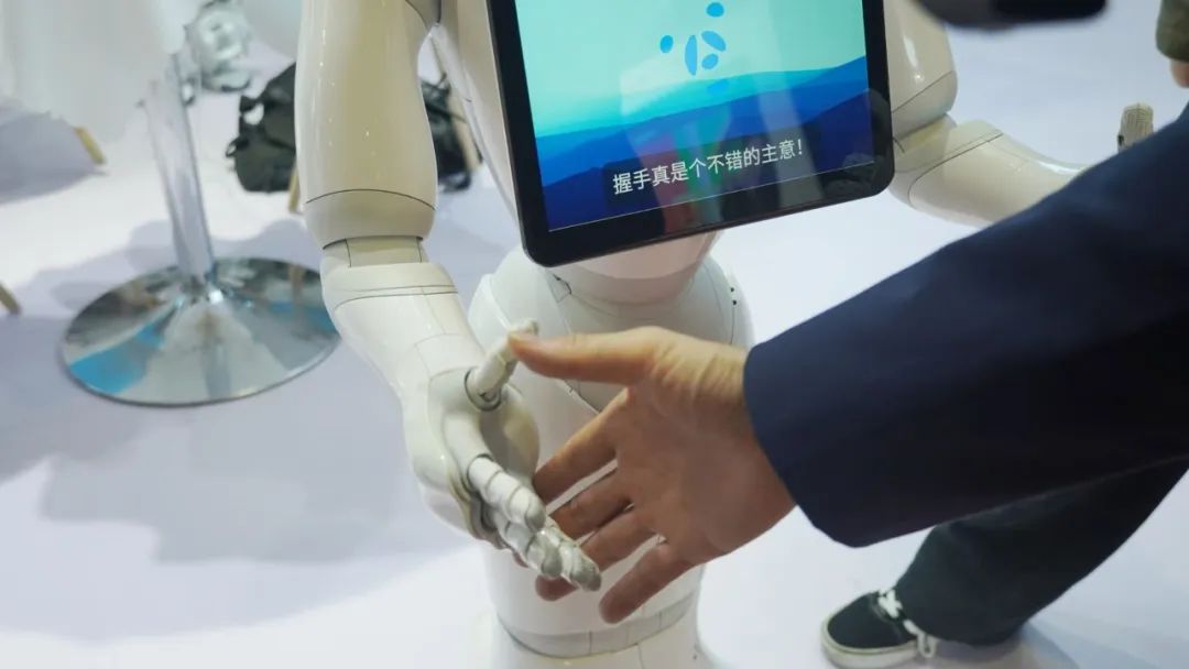“小智,我想和你握个手。”随着指令下达,机器人迅速抬起手臂,手指灵活地搭在观众掌心,完成了握手的动作。在展台一侧,软银机器人与上海智子信息科技股份有限公司(下文简称“智子科技”)合作推出的小智机器人吸引了许多观众前来互动。