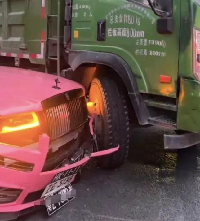 一辆货车撞上劳斯莱斯,