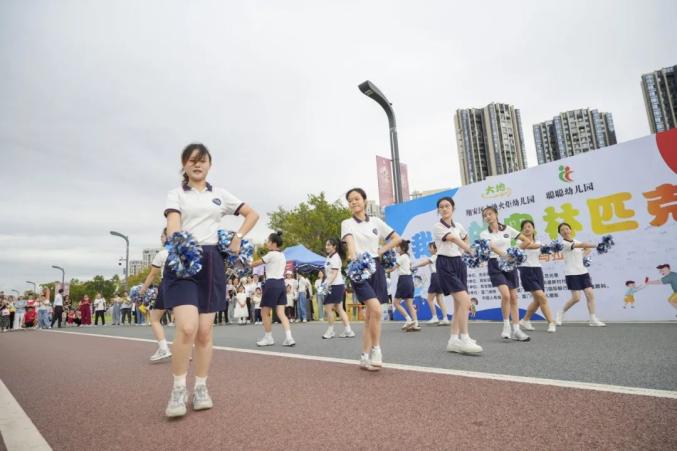 活动开始前,大地火炬幼儿园的老师进行热身舞蹈表演,民安跑团的志愿者们带领家长和小朋友进行热身运动,现场气氛热烈,每个人的脸上都洋溢着喜悦与兴奋。