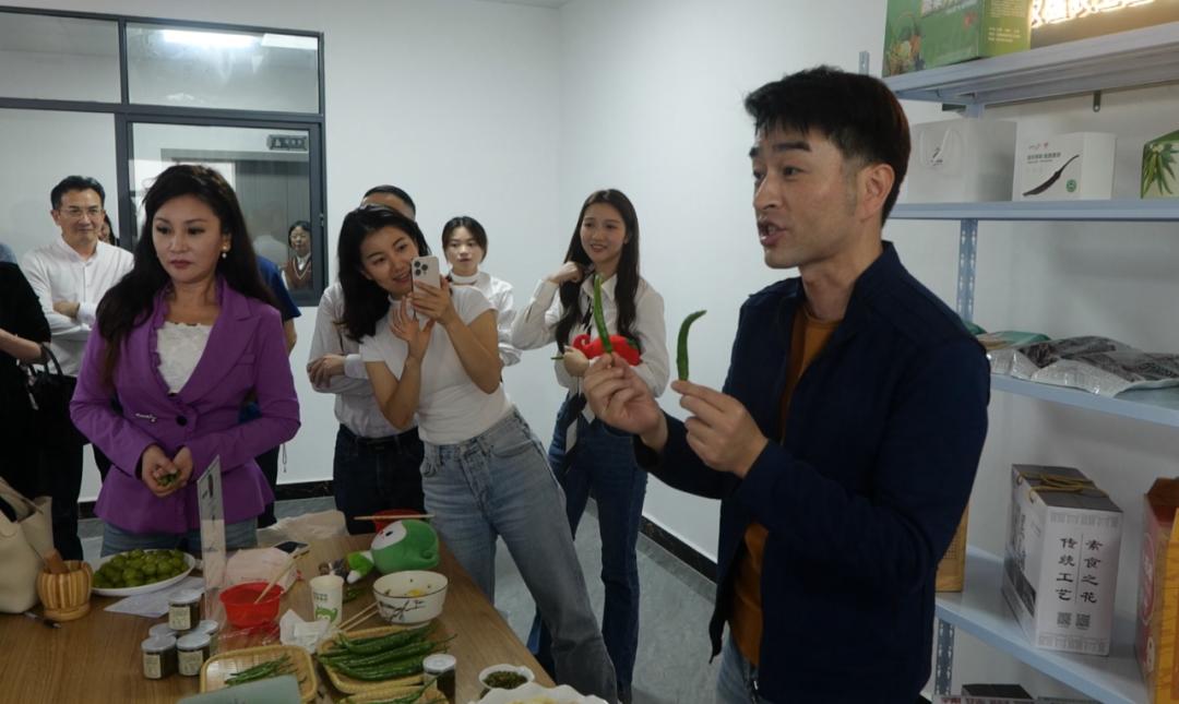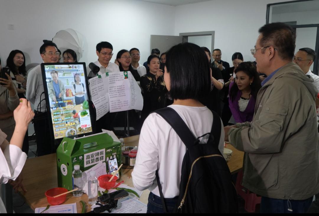 高安辣椒种植历史悠久,已成为当地的富民产业之一。名播名记们来到上湖乡富硒辣椒产业园时,村民们正在直播卖货。当了解到村民借助电商拓展销售渠道,将高安辣椒卖往全国各地时,大家纷纷为村民点赞。